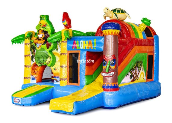 Multi-play slott med forhindringer, klatrevegg og sklie