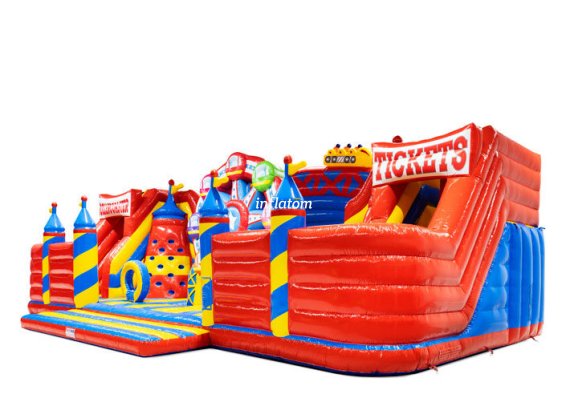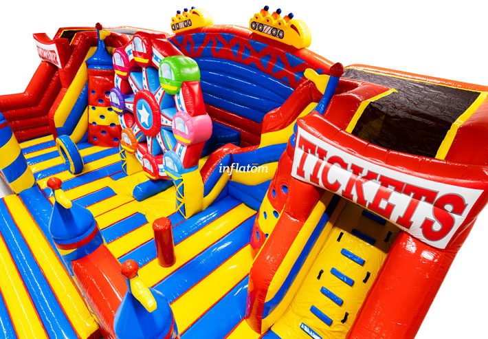 Candyland lekeplass 10x14 meter J Stort lekeareal på 140 m². Perfekt for store arrangementer.Hoppeslott, Sklie, hinderløype og klatretårn samlet i ett! NOK 136.408,00 ekskl. mva. Vis produkt